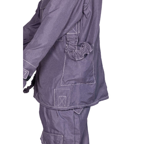 Conductive jacket complete with 2 elasticated bonding straps and storage pockets, hood with face-shield and breast pocket with flap.