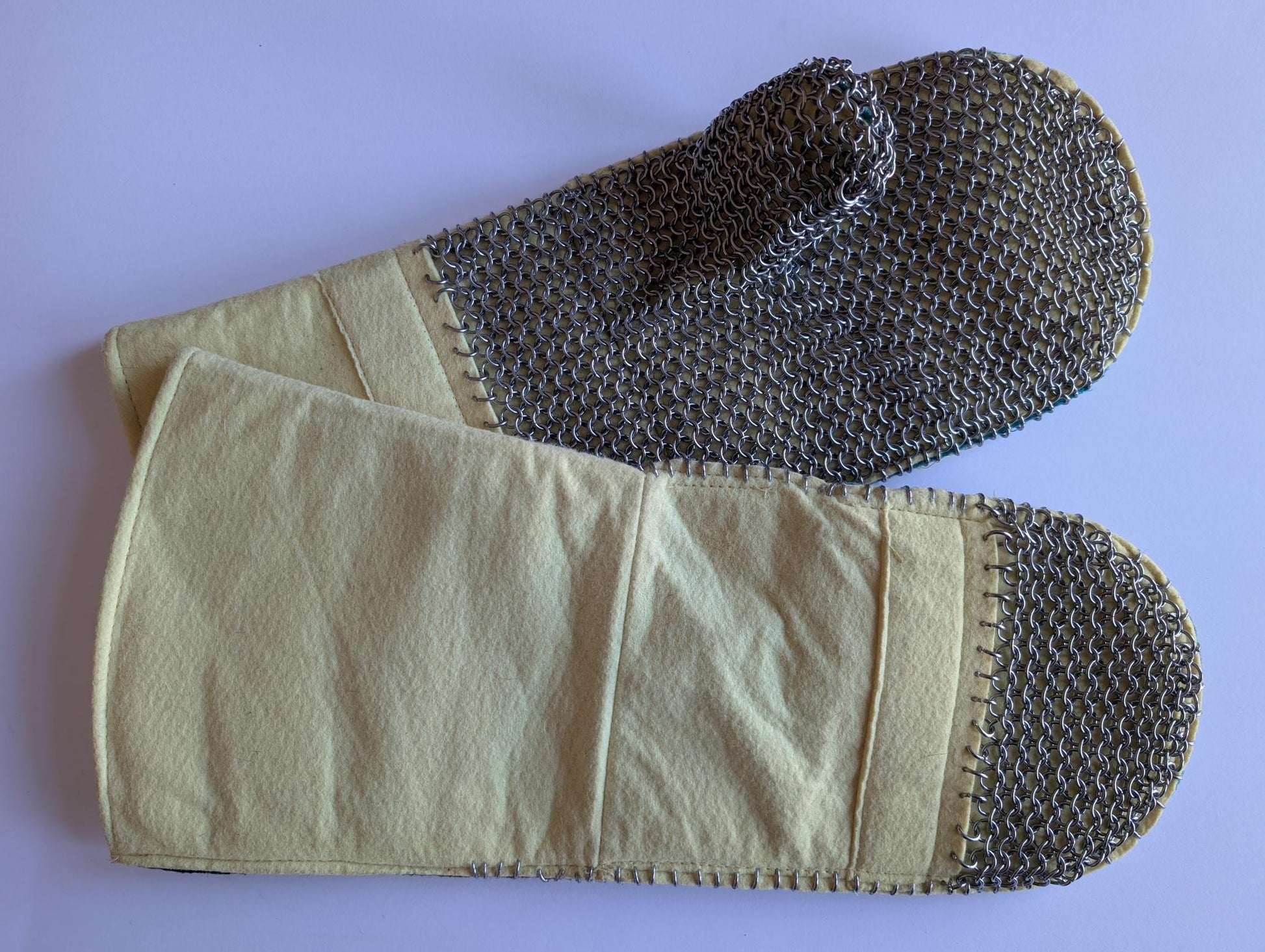 Strong link chainmail reinforcement on palm, thumb and top of back of hand allows air to circulate.